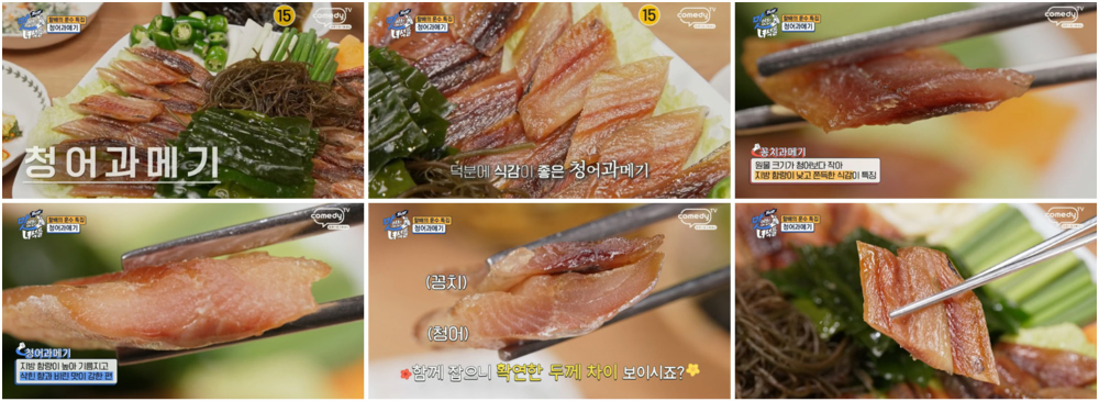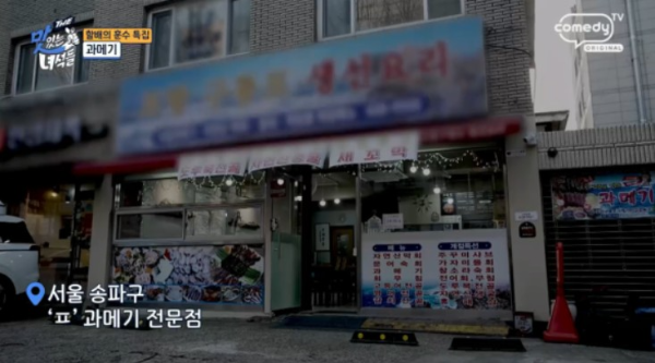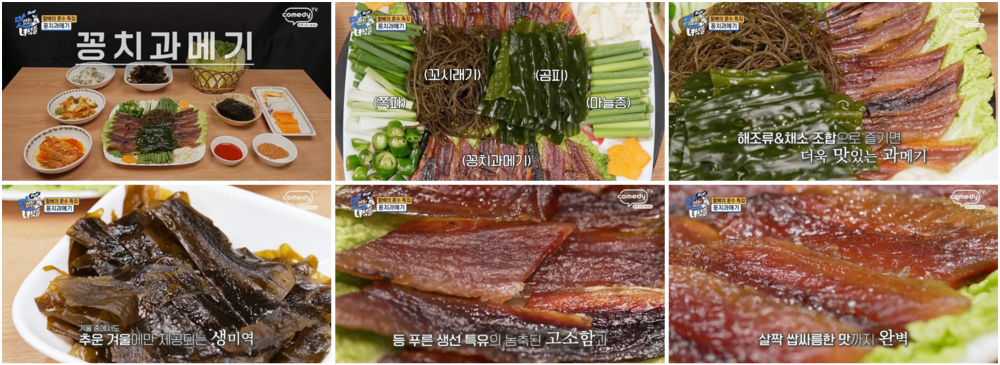 코미디TV의 맛있는 녀석들 499회에서 명절특집 할배의 훈수 편이 방송되었습니다. 겨울 제철 과메기를 맛보기 위해 서울 송파구에 위치한 포항구룡포생선요리를 방문했습니다. 이곳은 포항 구룡포 덕장에서 공수한 과메기를 제공하며, 기본적으로 꽁치과메기를 취급하고 청어과메기도 구비하고 있습니다.